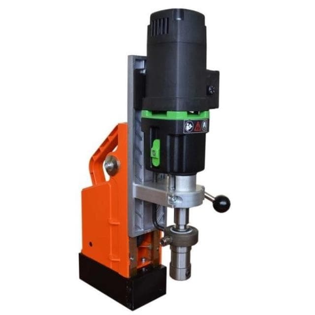 Это компактный профессиональный инструмент для сверления отверстий в стальных балках, листах или трубах. Данный магнитый сверлильный станок позволяет нарезать резьбы до М20 без применения дорогостоящих реверсных муфт.