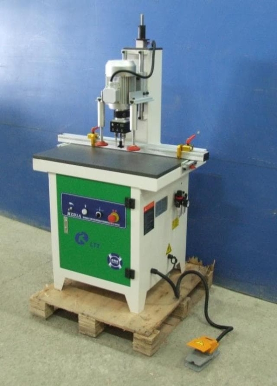 Станок LTT MZB1A предназначен для вертикального сверления гнезд под установку петель. Управление сверлильными суппортами производится пневмопедалью.