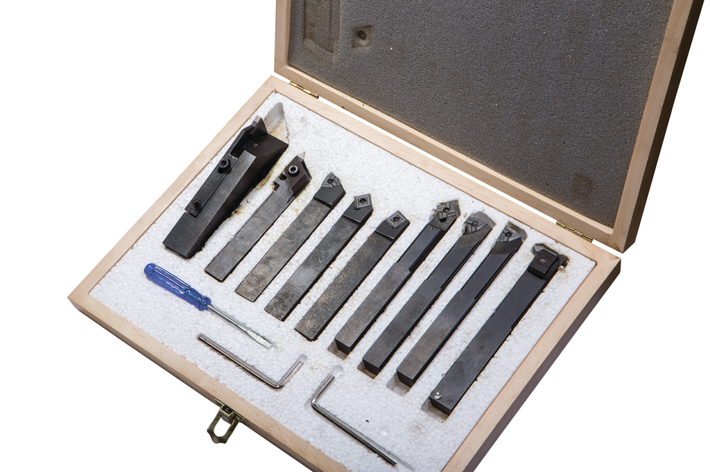 Набор из 9 резцов 10x12 мм представляет собой комплект оснастки для выполнения основных токарных работ на оборудовании компании JET. Резцы оснащены механическими креплениями для монтажа твердосплавных пластин. Набор режущих инструментов предназначен для работы на моделях станков BD-9G, BD-920G, BD-11W. Механическое крепление имеет винтовое соединение, отличаясь прочностью и надежностью. Благодаря такому приспособлению, стало возможным существенно увеличить не только длительность срока эксплуатации резца, но и повысить качества токарной обработки. В набор входит специальный ключ, обеспечивающий быстрое снятие и установку пластин. В наборе имеется 9 резцов, каждый из которых предназначен для выполнения определенного вида работ.