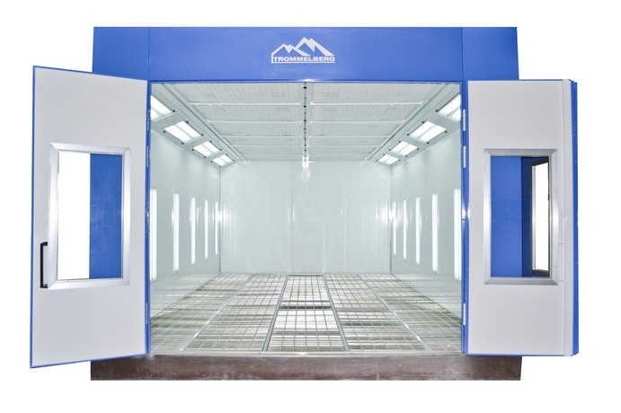 - Кабина. Окрасочно-сушильная камера изготовлена из окрашенных стеновых панелей с тепло- и звукоизоляцией. Наличие изоляции в сочетании с мощным тепловым агрегатом обеспечивает быстрый нагрев и поддержку температуры воздуха на постоянном уровне. Камера полностью отвечает сложившимся на рынке требованиям, позволяя обслуживать крупногабаритные транспортные средства. Кабина имеет сквозное исполнение с двумя 4-створчатыми воротами и двумя дверями для персонала.