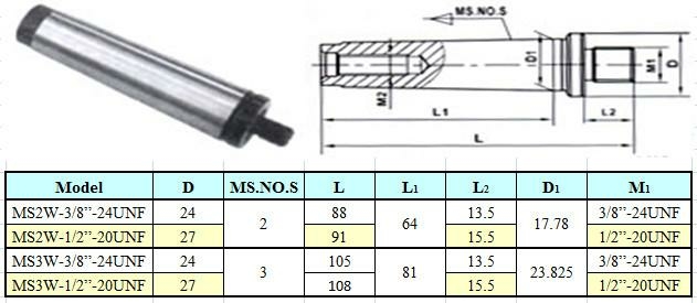 Оправка КМ3 / 1/2"-20UNF без лапки (М12х1.75), для резьбовых патронов "CNIC" (MS3W-1/2-20UNF)