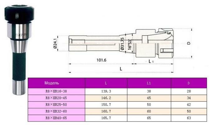 - Хвостовик R8 с резьбой 7/16 - 20UNF