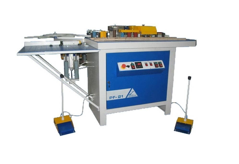 Cтанок PF-21 предназначен для облицовывания прямолинейных кромок плитных материалов рулонными кромками АБС, ПВХ и полосовым кромочным материалом толщиной до 3мм.