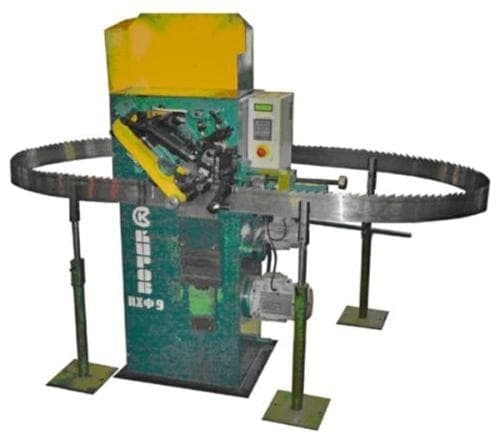 Полуавтомат для холодного плющения и формования зубьев круглых, рамных и ленточных пил ПХФ9(Р) предназначен для холодного плющения и формования зубьев круглых пил по ГОСТ 980-80 (тип 1 исполнение 1), рамных пил по ГОСТ 5524-75, ленточных пил по ГОСТ 6532-77 и ленточных бревённых пил по ГОСТ 10670-77, а также аналогичных перечисленных пил зарубежного производства.
