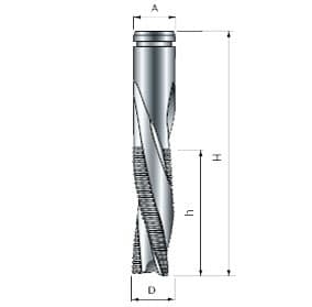 Монолитная концевая фреза со стружколомами. Спираль на самой фрезе направлена для выброса стружки вверх, что обеспечивает лучшее качество обработки в нижней части паза.