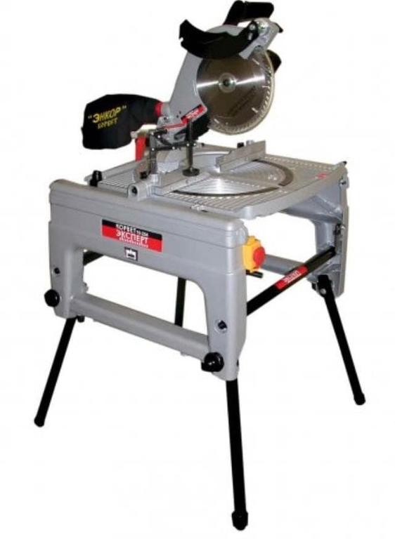 Универсальное размещение Ножки стола универсальной пилы Энкор Корвет Эксперт 10-254 91200 (27210) - складывающиеся, что позволяет размещать ее как на полу, так и на верстаке. |