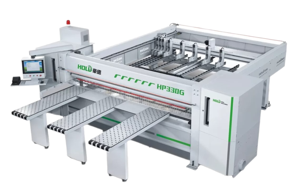 Пильный центр с ЧПУ HOLD HP330G является передовым решением для пакетного раскроя плитных материалов, таких как МДФ, ДСП, ЛДСП, и прочих. Этот станок, предназначенный для крупносерийного производства, оснащен системой предварительного подреза, что позволяет минимизировать сколы и повысить качество конечной продукции.