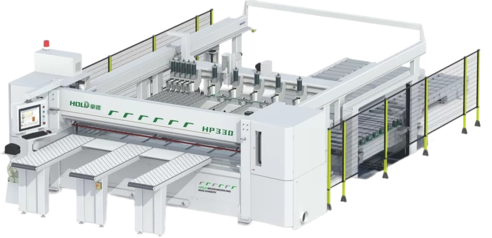 Пильный центр с ЧПУ HOLD HP330HB является передовым решением для пакетного раскроя плитных материалов, таких как МДФ, ДСП, ЛДСП, и прочих. Этот станок, предназначенный для крупносерийного производства, оснащен системой предварительного подреза, что позволяет минимизировать сколы и повысить качество конечной продукции.