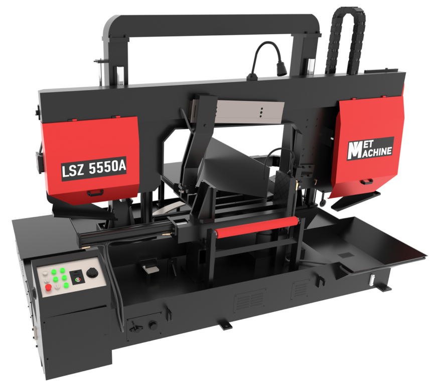 Полуавтоматический ленточнопильный станок MetMachine LSZ5550А горизонтального типа с поворотным основанием предназначен для пиления различных заготовок из металлов, пластмасс, графита, теплоизоляции и др. под углом 90°, 60°, 45°. У модели асинхронный двигатель 5,5 кВт, требуется подключение питания на 380В.