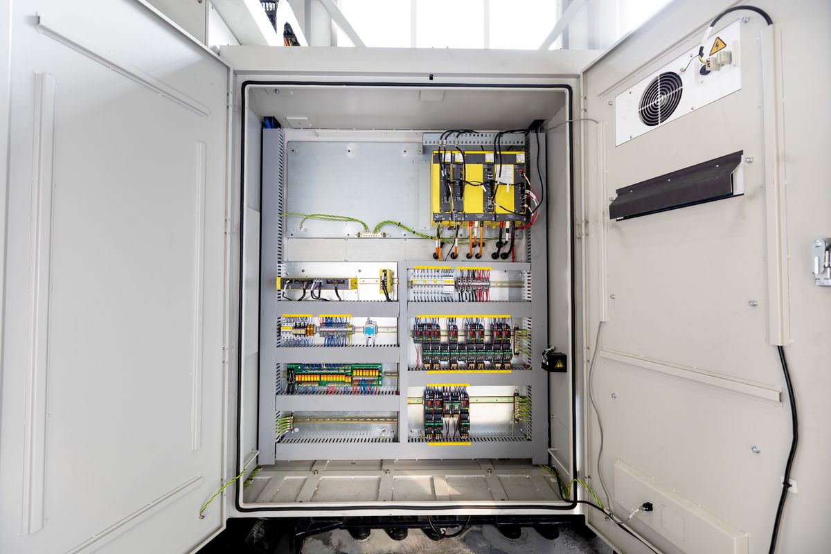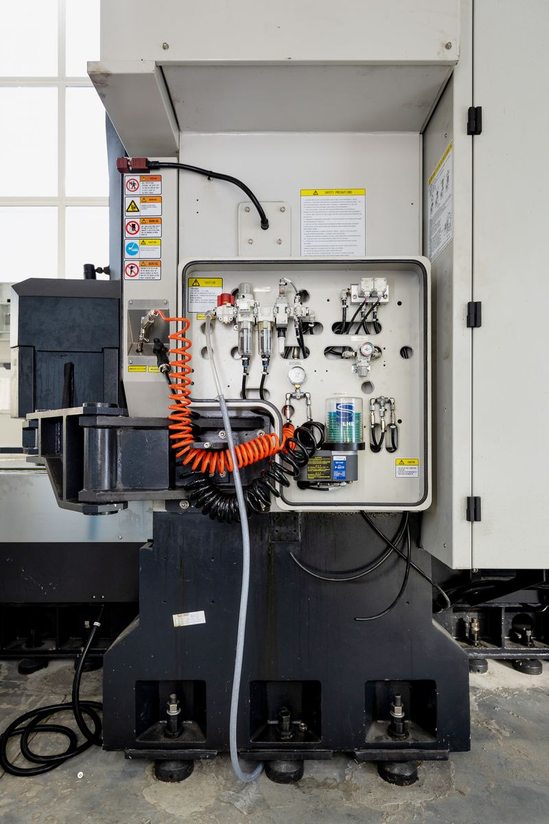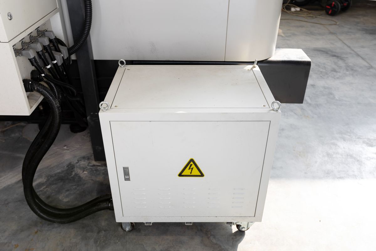 Электрические кабинеты Электрические кабинеты низкого и высокого напряжения разделены между собой. Все сигнальные кабели отделены от кабелей высокого напряжения для обеспечения более стабильного сигнала. Кабинет высокого напряжения: контакторы, трансформатор, фильтр шпинделя, вырабатывают мощное электромагнитное поле во время работы. Чтобы избежать помех, эти компоненты изолированы от других систем. |