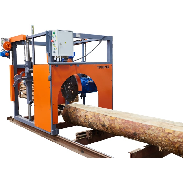 Пилорама дисковая угло-поворотная «ТРИУМФ» 1П предназначена для продольной распиловки бревен с целью получения пиломатериала в виде брусьев, обрезных досок, брусков, шпона.