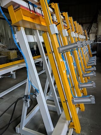 - для создания равномерного усилия прессования применяются прижимные фронтальные устройства, оснащенные двумя пневматическими цилиндрами;
