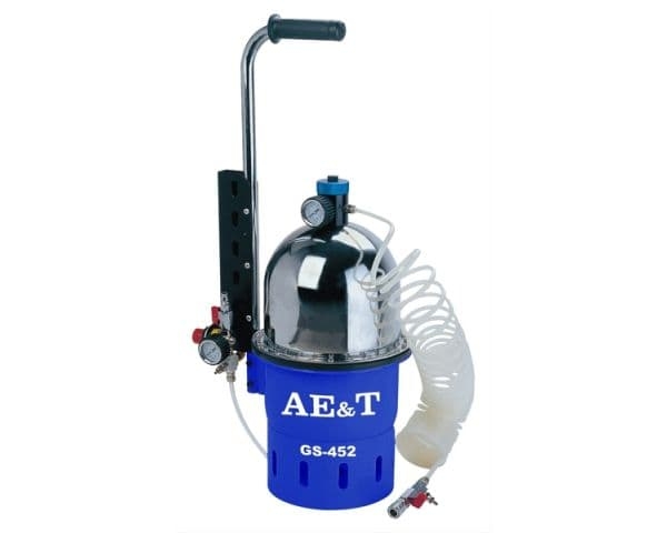 Приспособление для замены тормозной жидкости AE&T GS-452 - данная модель подходит для большинства тормозных систем. Металлический резервуар окрашен качественной краской и не подвержен коррозии. Специальная рукоятка и небольшие габариты позволяют с легкостью переносить устройство по рабочей зоне, что обеспечивает удобство и комфорт. Установка гарантирует высокое качество и эффективность работы.