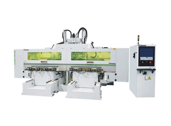 Пятиосевой обрабатывающий центр с двумя рабочими столами и четыре области обработки. Предназначен для фрезерной обработки мебельных колонн и опор, деревянных пилястр, деталей балюстрад, лестниц, стульев, столов, диванов и других предметов мебели.