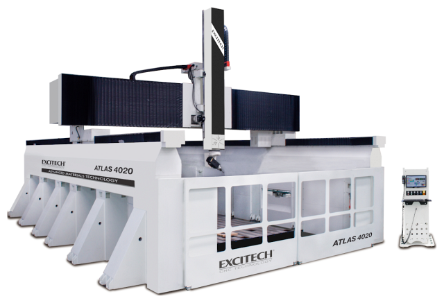 Пятиосевой обрабатывающий центр с ЧПУ EXCITECH ATLAS применяется при изготовлении мастер моделей, литьевых моделей, прототипов изделий, форм для вакуумной формовки, штампов и клише из различных типов материалов, в том числе модельного пластика и композитных материалов. Отличительной особенностью данного оборудования является мощная и стабильная портальная (мостовая) конструкция поперечной балки, что обеспечивает высокие скоростные показатели обработки и гарантирует высокую точность получаемых изделий. Виды обрабатываемых материалов: Композитные материалы (углепластик, стеклопластик), ABS-пластик, древесина любых пород, ДСП, ДВП, МДФ, фанера, «Dibond», «Alucobond», любые полистиролы (в том числе ПВХ и полистиролы с поликарбонатом), гетинакс, искусственный камень, акриловое стекло и оргстекло, модельный пластик и т.п.
