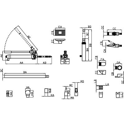 Основными рабочими механизмами данного набора являются гидроцилиндр и гидронасос . Для увеличения функционала выполняемых работ набор можно дополнить гидроцилиндром обратного действия .