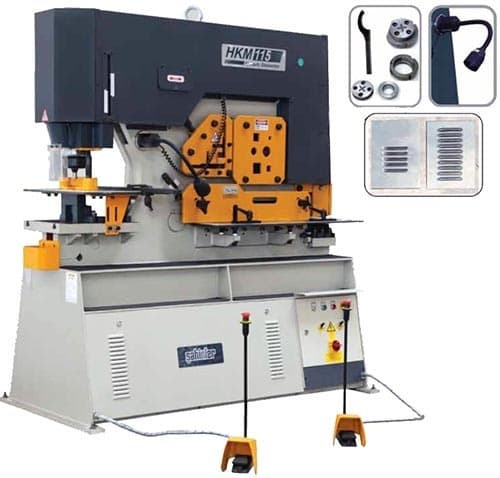 Комбинированные гидравлические пресс-ножницы Sahinler HKM-115 могут выполнять широкий спектр работ: рубка профилей, проката, швеллеров, уголков, двутавров, пробивание отверстий, вырубка пазов, подгибка и т.д.