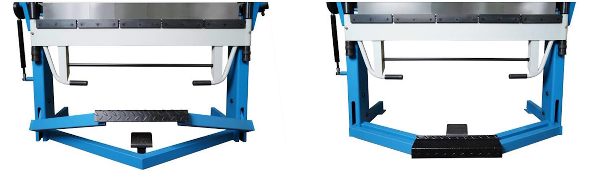 Станок оснащен удобным ножным приводом зажима заготовки, что позволяет оператору экономить силы, а также освободить руки для максимально точного позиционирования листа. |