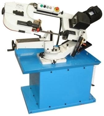 - Станок имеет возможность поворота рамы пилы, тиски при этом остаются в неподвижном состоянии, привод клиноремённый.