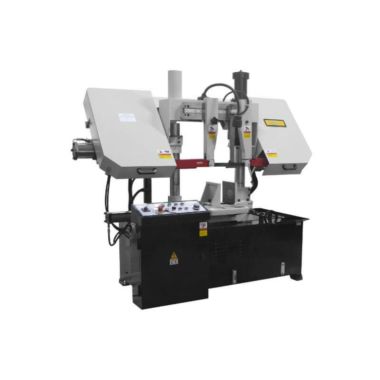 Двухстоечные ленточнопильные станки имеют 2 вертикальные стойки (колонны) большого диаметра по которой вертикально перемещается горизонтальная пильная рама.