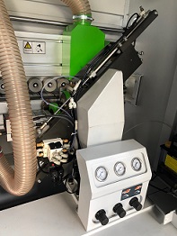 КЛЕЕНАНОСЯЩИЙ УЗЕЛ Оснащен пневматическими шторками защищающими клеенаносящий вал от грязи и пыли. Шторки автоматически открываются при подаче заготовки, обеспечивая лучшее качество приклеивания кромки. |