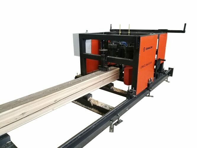 Модель для профилирования бруса обеспечивает обработку заготовки кареткой с переустановкой ножей. Каретка с установленными на ней двумя фрезами перемещается вдоль заготовки. Процесс профилирования выполняется с двух сторон в два этапа: сначала прямыми ножами, затем профильными, с одновременным поворотом обрабатываемой заготовки и переустановкой ножей.