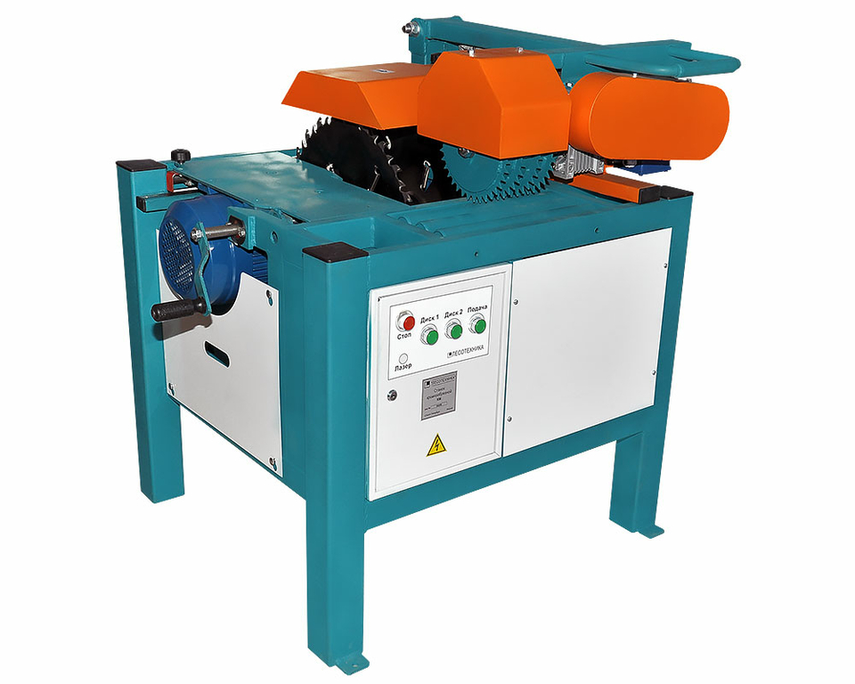 Кромкообрезной станок проходного типа КМ-500 предназначен для переработки необрезной доски и раскроя обрезной доски по пласти с целью получения обрезного пиломатериала различной ширины. В процессе распиловки на движется исходный пиломатериал через пильный узел, позволяя увеличить производительность станка и увеличить выход готовой продукции. Пиление осуществляется двумя дисковыми пилами диаметром 300-500 мм, одна из которых неподвижна, а вторая имеет плавную регулировку.