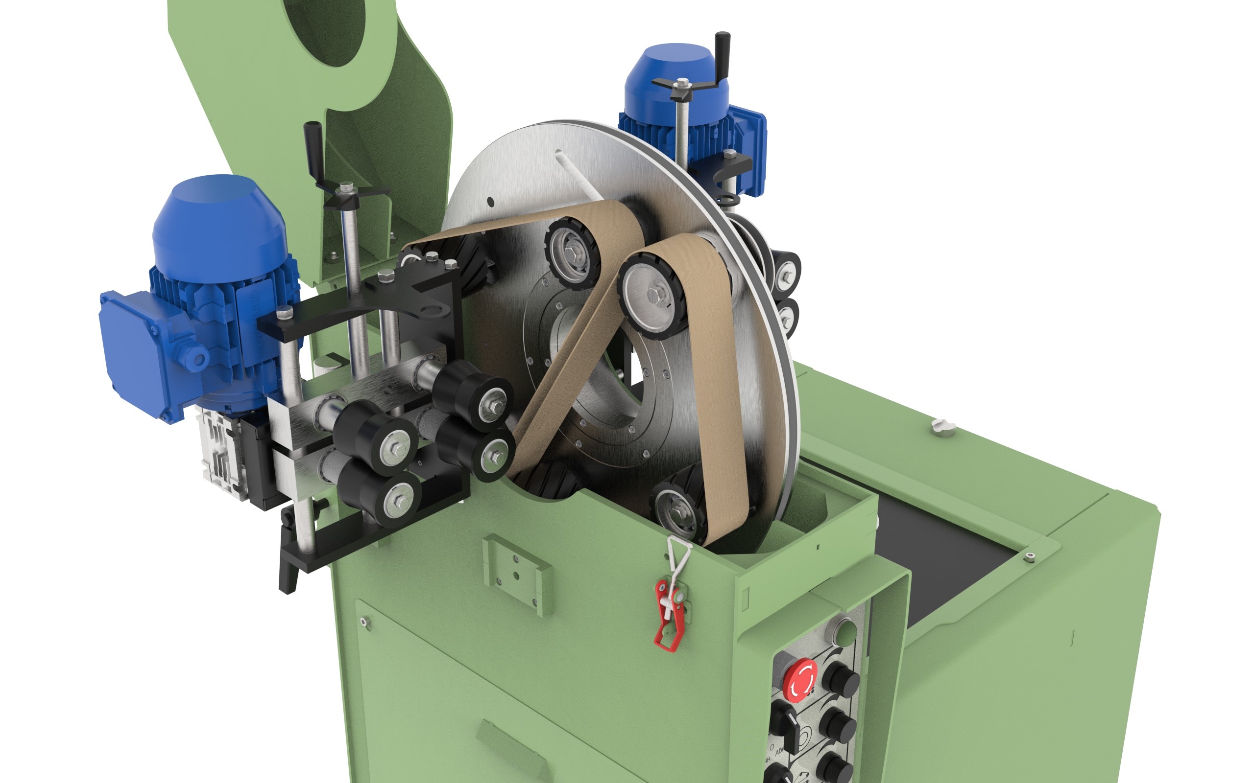 Планетарный принцип работы станка, выполняет одновременное вращение вокруг заготовки шлифовальных лент и приводного диска, таким образом достигается отличное качество обработки поверхности детали при шлифовке и полировке.