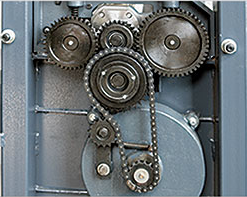 Система приводаНа станке используется усиленная система привода ножевого вала, состоящая из цельнолитого шкива и двух приводных ремней, что позволяет станку работать даже при высоких нагрузках. Подающие ролики на выходе (секционный, рифленый) и на выходе (2 гладких) приводятся в движение при помощи цепной передачи, что позволяет надежно перемещать заготовку в зоне обработки без рывков и проскальзываний. |