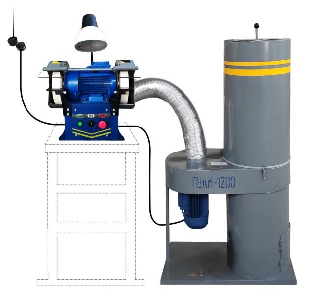 Пылеулавливающий агрегат предназначен для промышленного использования, для удаления и очистки воздуха от промышленной пыли, образующейся при работе заточных, шлифовальных станков.