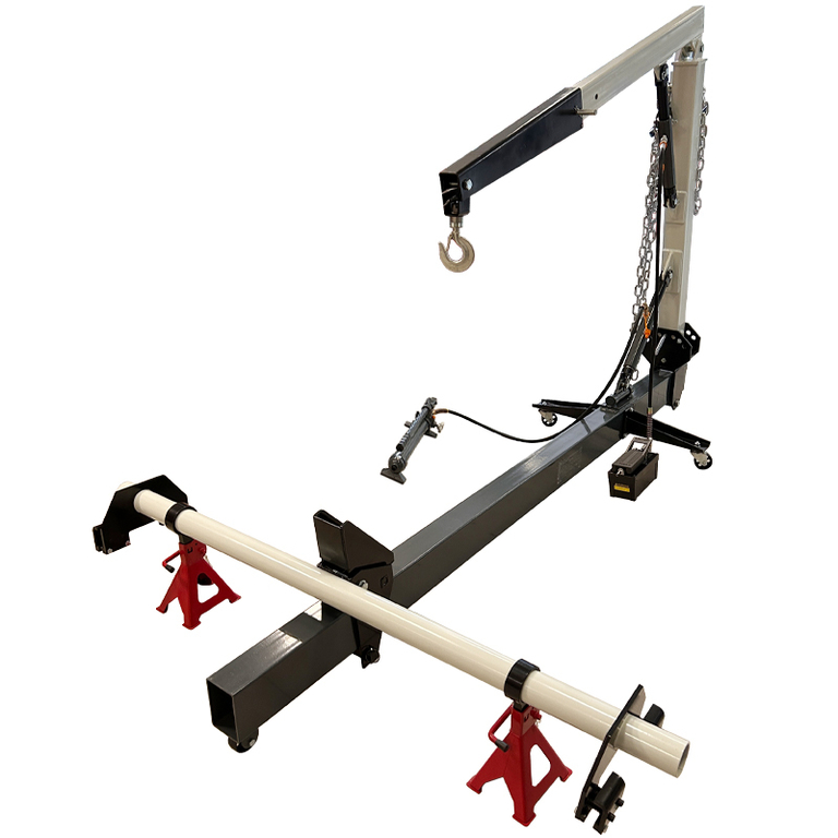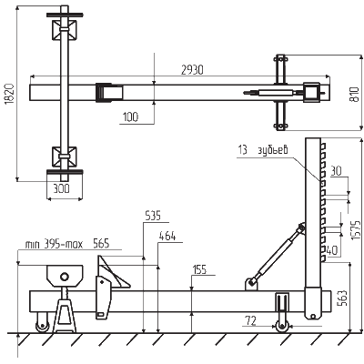 Данная модель оснащена балкой для тяги вверх, что делает более обширным применение установки. Балка для тяги вверх приводится в действие пневмогидравлическим насосом ножного привода. Наклон башни на 45 градусов в одну и в другую сторону позволяет производить вытягивание деформированного металла не только сзади-спереди автомобиля, но и по бокам.