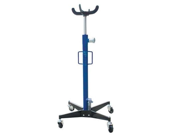 Стойка трансмиссионная AE&T T60101 предназначена для подъема, опускания и перемещения отдельных узлов автомобилей весом до 500 кг для их дальнейшего ремонта или технического обслуживания. Ножная педаль управления гарантирует удобство и легкость эксплуатации. Четыре поворотных колеса позволяют быстро перемещать конструкцию в необходимое место. Приспособление активно используется в авторемонтных мастерских.
