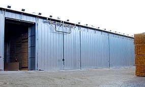 Стены, крыша и ворота состоят из двухсторонних профилированных панелей из алюминиевого сплава. В качестве утеплителя в стеновых панелях используется пенополиустирол, толщина утеплителя 140мм, что позволяет эксплуатировать сушильные камеры при температуре окружающей среды до -55 0С.