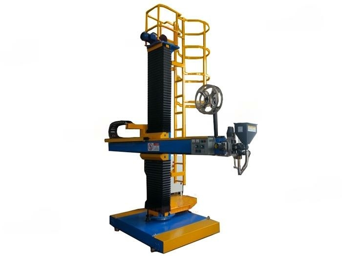 • Состоит из жесткого прямоугольного основания, поворотной колонны, выдвижной штанги, на которую крепят сварочную головку, и механизма подъема;