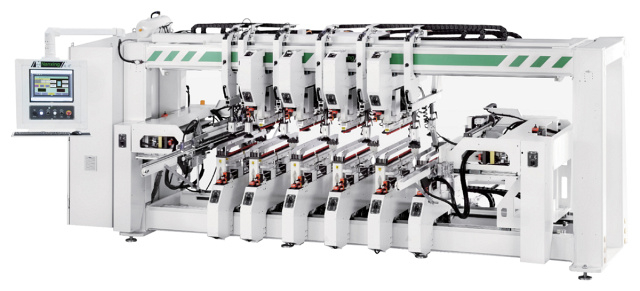 Автоматический 12 траверсный сверлильно-присадочный станок проходного типа предназначен для сверления за один проход сквозных и глухих отверстий в торцах деталей в пласте деталях корпусной мебели при массовом производстве мебели.