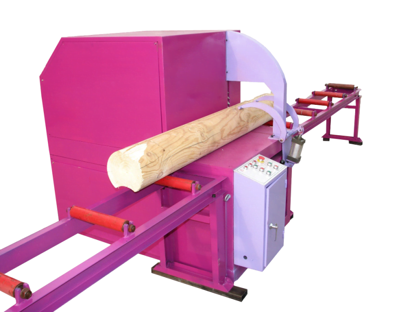Пильный узел перемещается по высокоточным прецизионным направляющим и линейным подшипникам, приводимый в действие мотор редуктором (Италия) и парой зубчатая рейка-шестерня.Скорость пиления плавно изменяется инвертором (MITSUBIHI) 0–4 м/мин. Все применяемые детали исключительно надёжны. Бревно надёжно фиксируется пневмо прижимом, что исключает вибрацию. Рез чистый, без выщипов и сколов. Рекомендуется использование в комплекте с рольгангами Р3001, имеющих два перемещаемых откидных упора, определяющие длину бревна. Пильный диск входит в комплект станка.