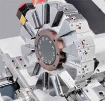 Револьверная голова с сервоприводом и блоками приводного инструмента Приводной инструмент позволяет выполнять осевое, радиальное, угловое сверление и фрезерование. Привод осуществляется к задействованному в обработке инструменту. |