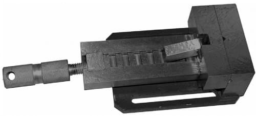 На неподвижной губке имеется паз для крепления круглых заготовок.