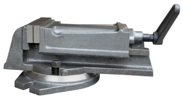 Изготовлены из качественного чугуна. Оснащен поворотным столом на 360 градусов Винт защищен сверху от попадания грязи и стружки.