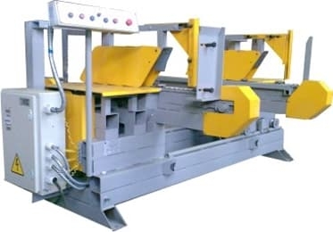 Станки торцовочные серии ТМ предназначены для двусторонней обработки доски. Станок торцовочный ТМ 15 состоит из трех узлов распиловки, из которых два – передвижные. В состав каждого узла входит электродвигатель, узел главного вала, приспособление подачи материала, защита пилы с устройством прижима материала, механизм расстановки узлов, корпус. Узлы передвигаются по ведущим валам. Привод подачи материала подсоединен к каждому из них общим валом с червячной передачей с электродвигателем.