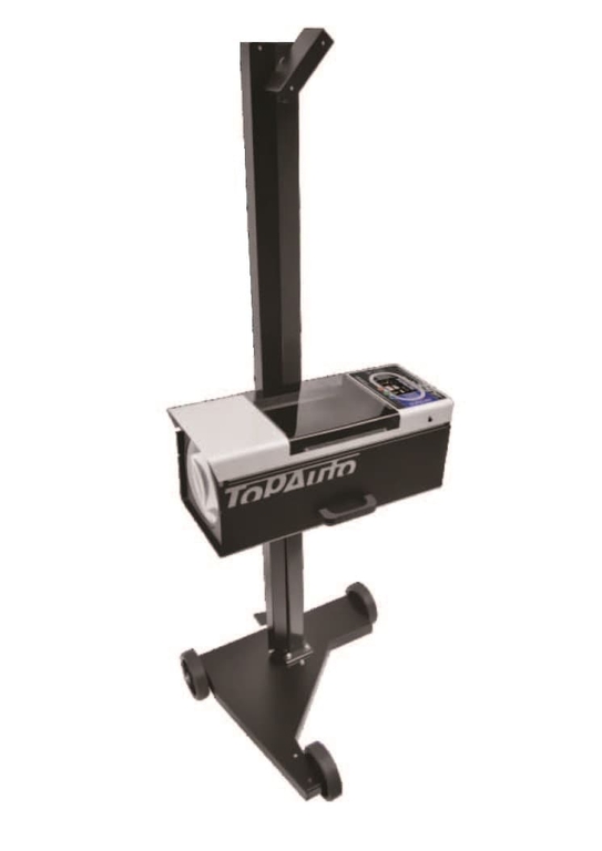 - Устанавливается на вертикальную мобильную стойку с тремя прорезиненными колесами; переднее колесо оснащено эксцентриком для регулировки положения прибора по отношению к горизонту