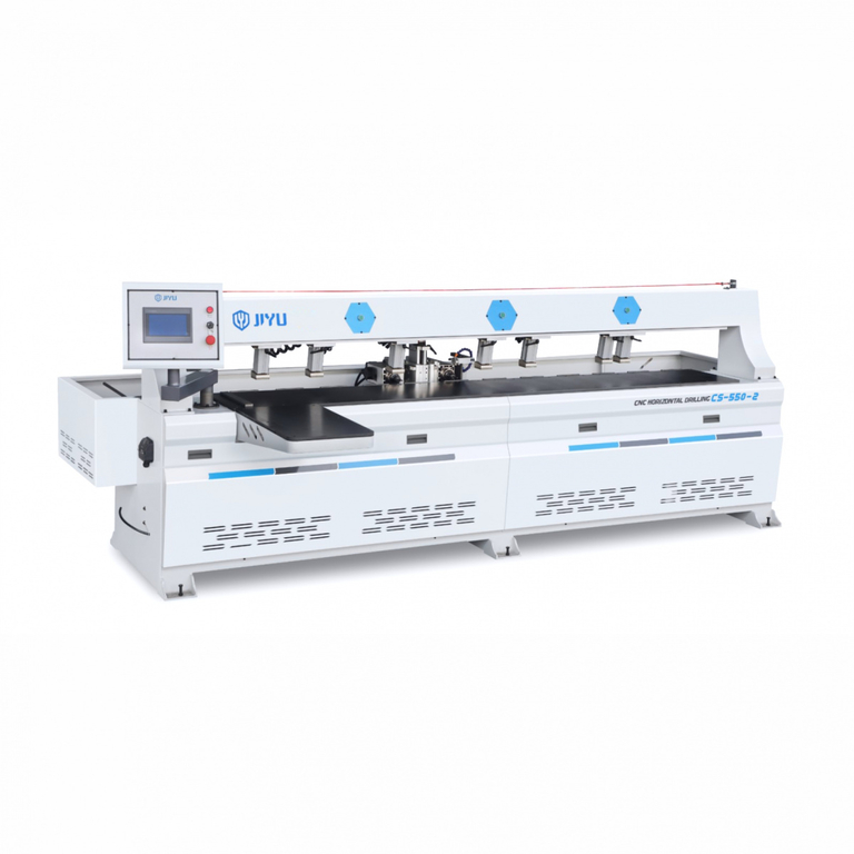 Сверлильно-присадочный станок с ЧПУ JIYU CS-550-2 предназначен для высокоточного сверления глухих отверстий и фрезерования различных элементов в торцах плитных материалов.