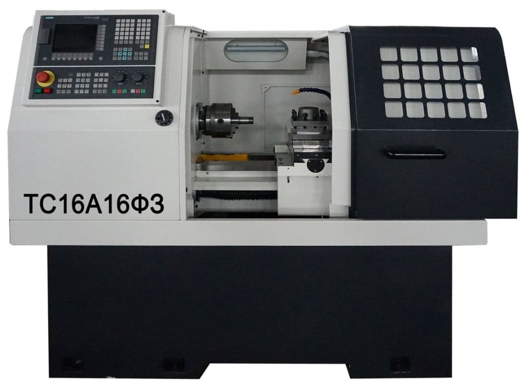 Токарный станок ТС16А16Ф3 с ЧПУ предназначен для мелко и средне-серийной обработки деталей небольшой массы и габаритов. Высокие обороты вращения шпинделя и сервопривода по осям позволяют производить обработку цилиндрических, конических и сферических поверхностей, торцов, канавок и фасок, нарезания различных видов цилиндрических и конических резьб. Возможна обработка черных, цветных металлов и пластмасс.