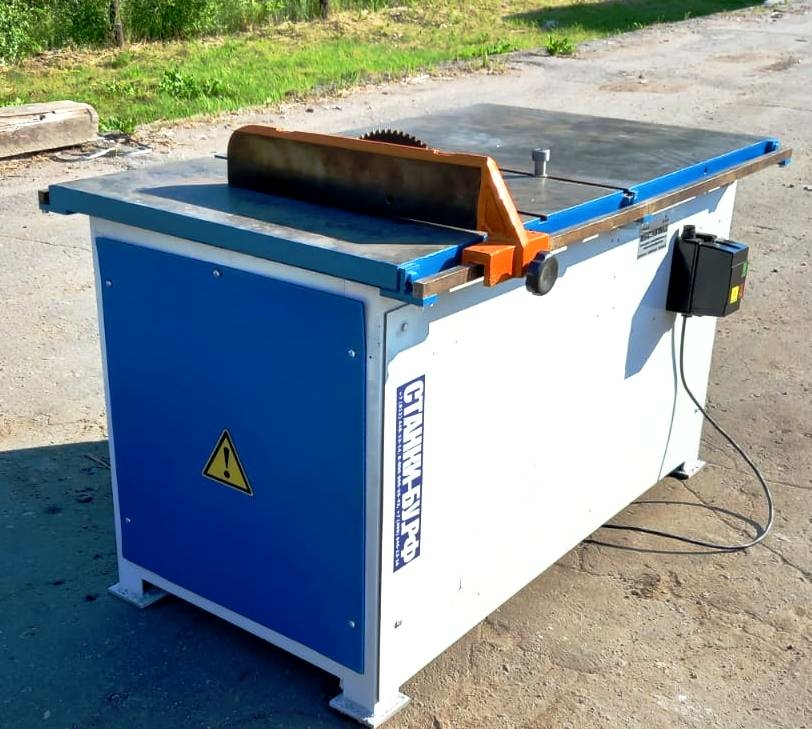 Жесткая сварная станина станка коробчатой формы. Сверху установлен рабочий чугунный стол. Направляющая линейка усиленной конструкции крепится на столе; Наличие ограждение пилы с патрубком для стружкоотсоса; Когтевая защита от обратного выброса заготовки; Суппорт с приводом и механизм регулировки степени выступания пильного диска над столом станка расположен внутри станины на подмоторной плите. Применяется в столярных цехах малой и средней производительности.