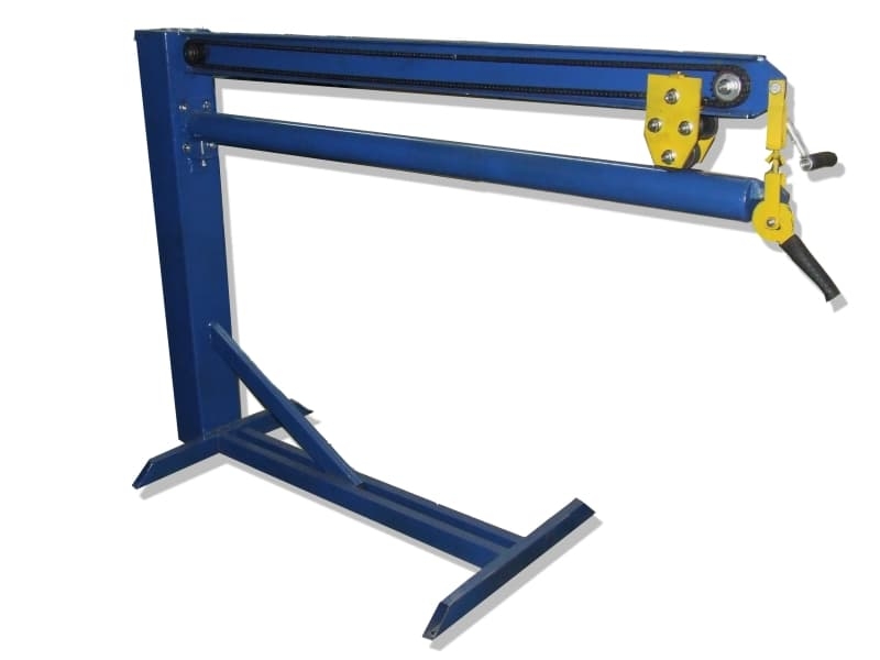 - Приспособление с роликом (замок) откидывается в сторону, на штангу надевается заготовка с элементами фальцевого соединения, далее с помощью подвижной каретки происходит ручная осадка различных фальцевых швов (угловые, лежачие).