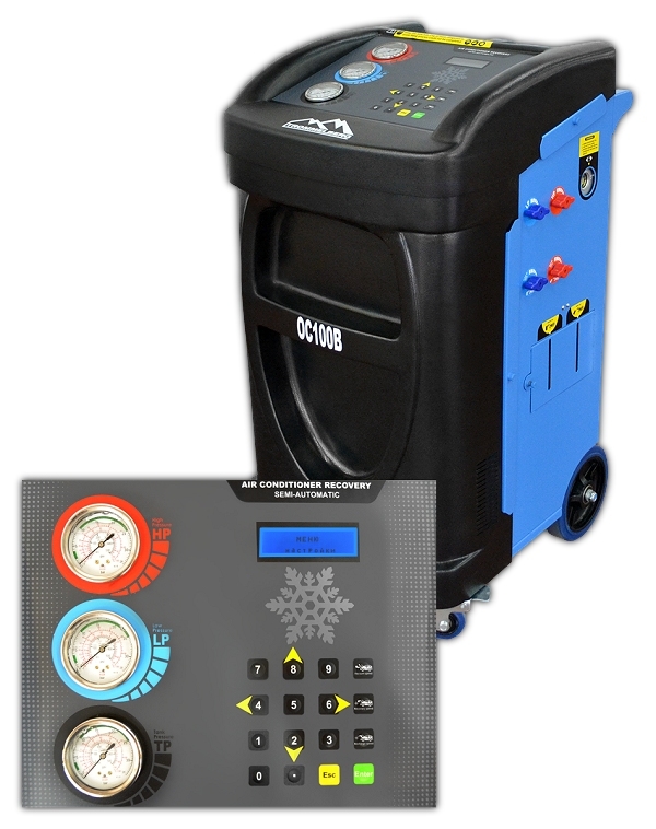 Установка для обслуживания кондиционеров Trommelberg OC100 для вакуумирования и перезарядки автомобильных кондиционеров, а также для откачки и очистки хладагента R134a от остатков масел, воздуха, водяных паров и т.п.