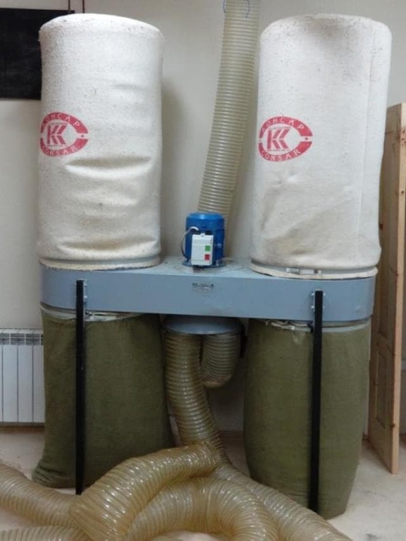 Очищает воздух фильтром от стружки и пыли с размером от 5 мкм. Для уборки пола в производственных помещениях стружкоотсос отсоединяется от станка(ов); на входные патрубки ставятся заглушки. открывается шиберная заслонка и воздух вместе с мусором начинает засасываться через специальный заборник, расположенный в нижней части стружкоотсоса. Стружкоотсос легко перемещать по полу на колёсных подшипниковых опорах.