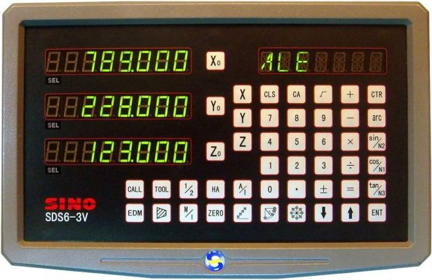 Устройство цифровой индикации SDS6-3V с отображением координат трех осей. Яркий дисплей. Возможность выбора типа станка - токарный, фрезерный, шлифовальный.