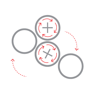 • Верхний валок приводится в действие посредством планетарной передачи