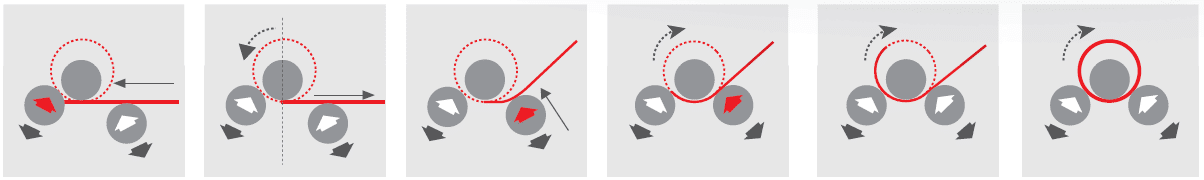 - боковые валки и нажимной валок перемещаются при помощи гидравлических поршней.